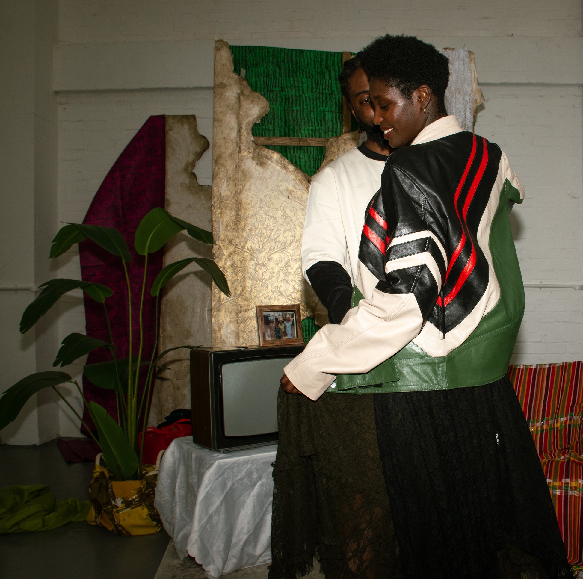 The JOMO Leather Jacket is crafted from goat leather, naturally lightweight, flexible, and strong. Finished with the Joy Osula Motif print, it balances heritage and innovation. Over time, the leather softens and develops a rich patina, making each jacket truly one of a kind.