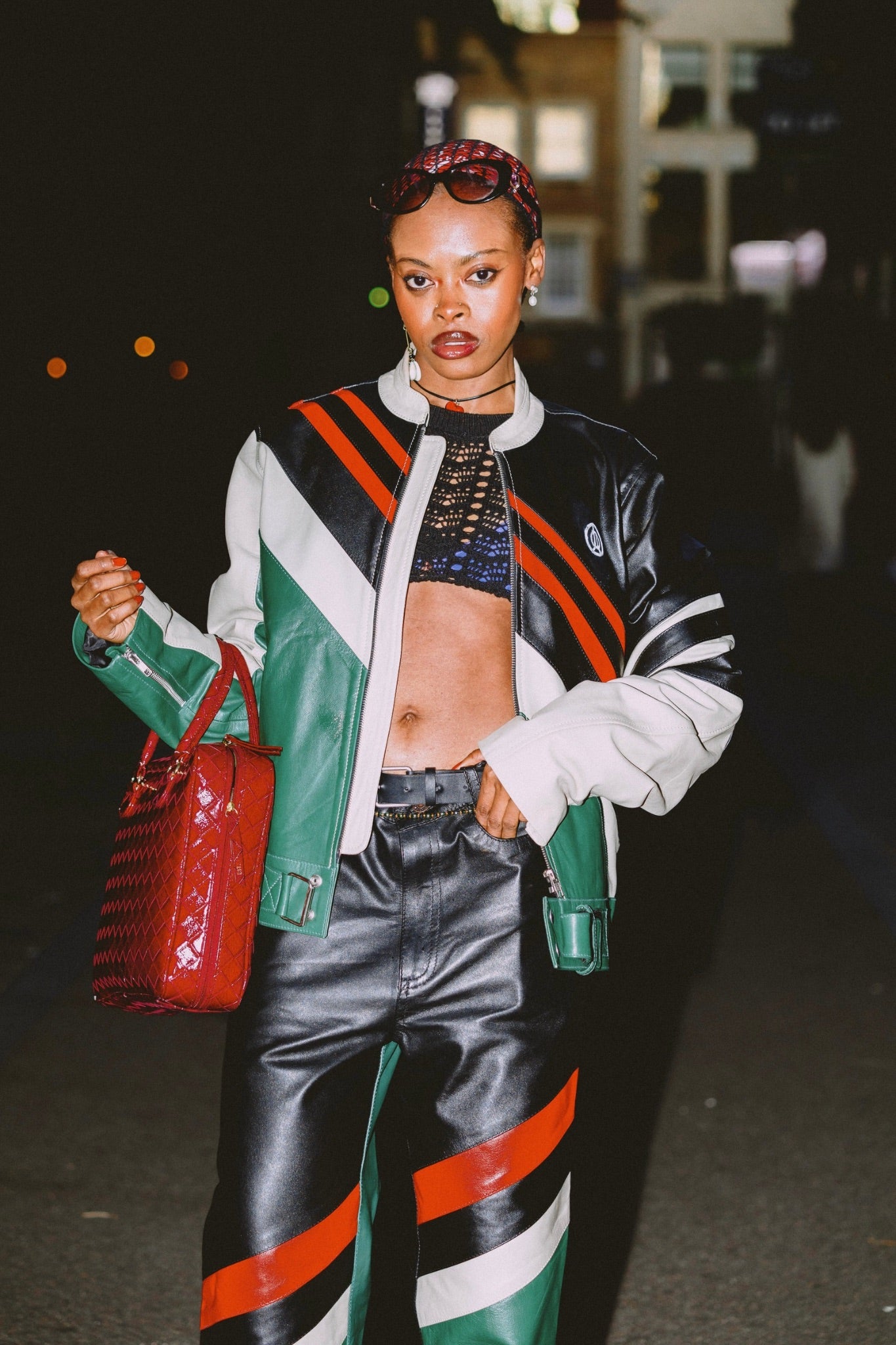 The JOMO Trousers combine tailored structure with premium goat leather, offering resilience and style in equal measure. Designed for movement and practicality, with cargo and back pockets, they ground the set while standing strong on their own.