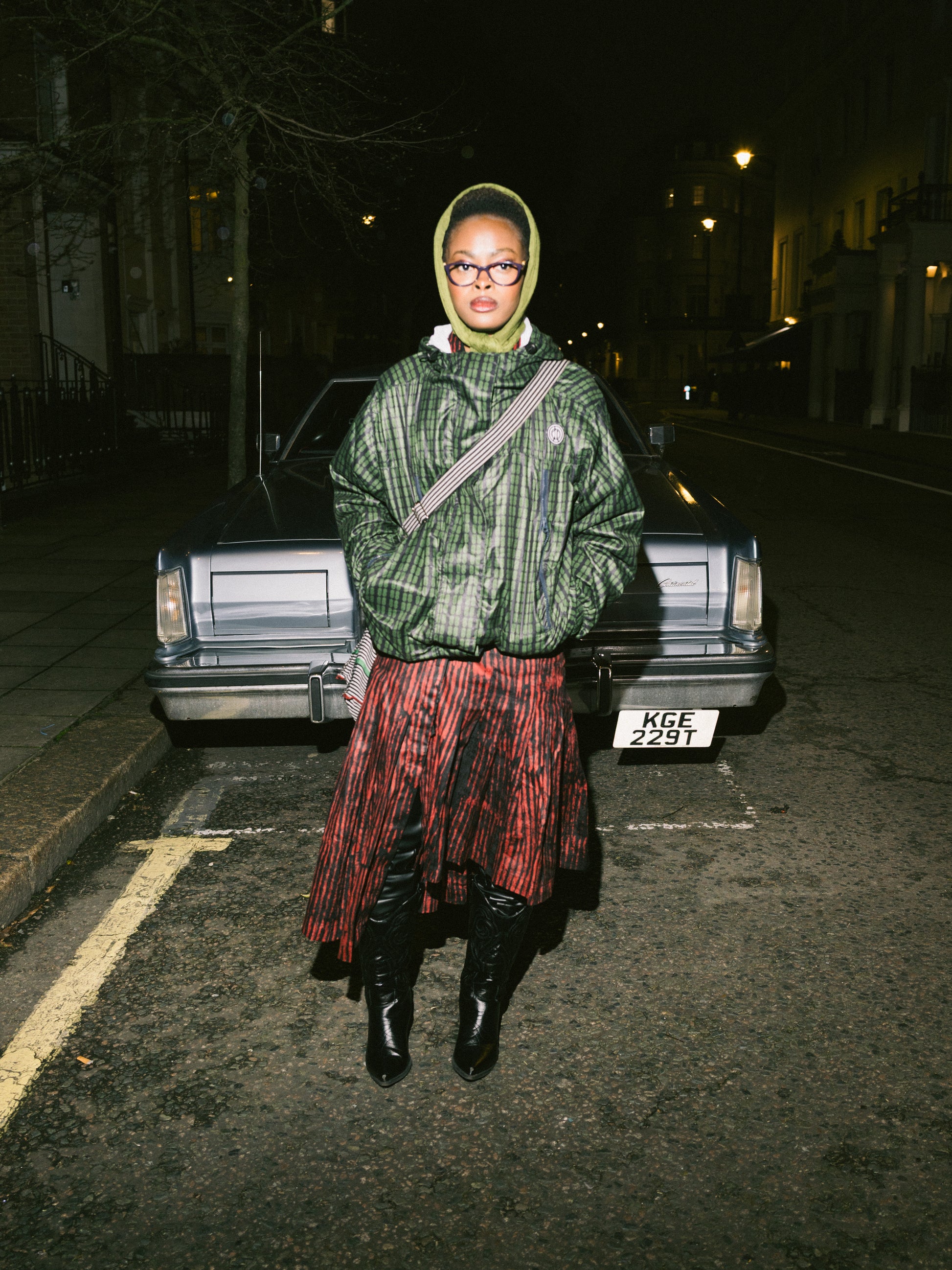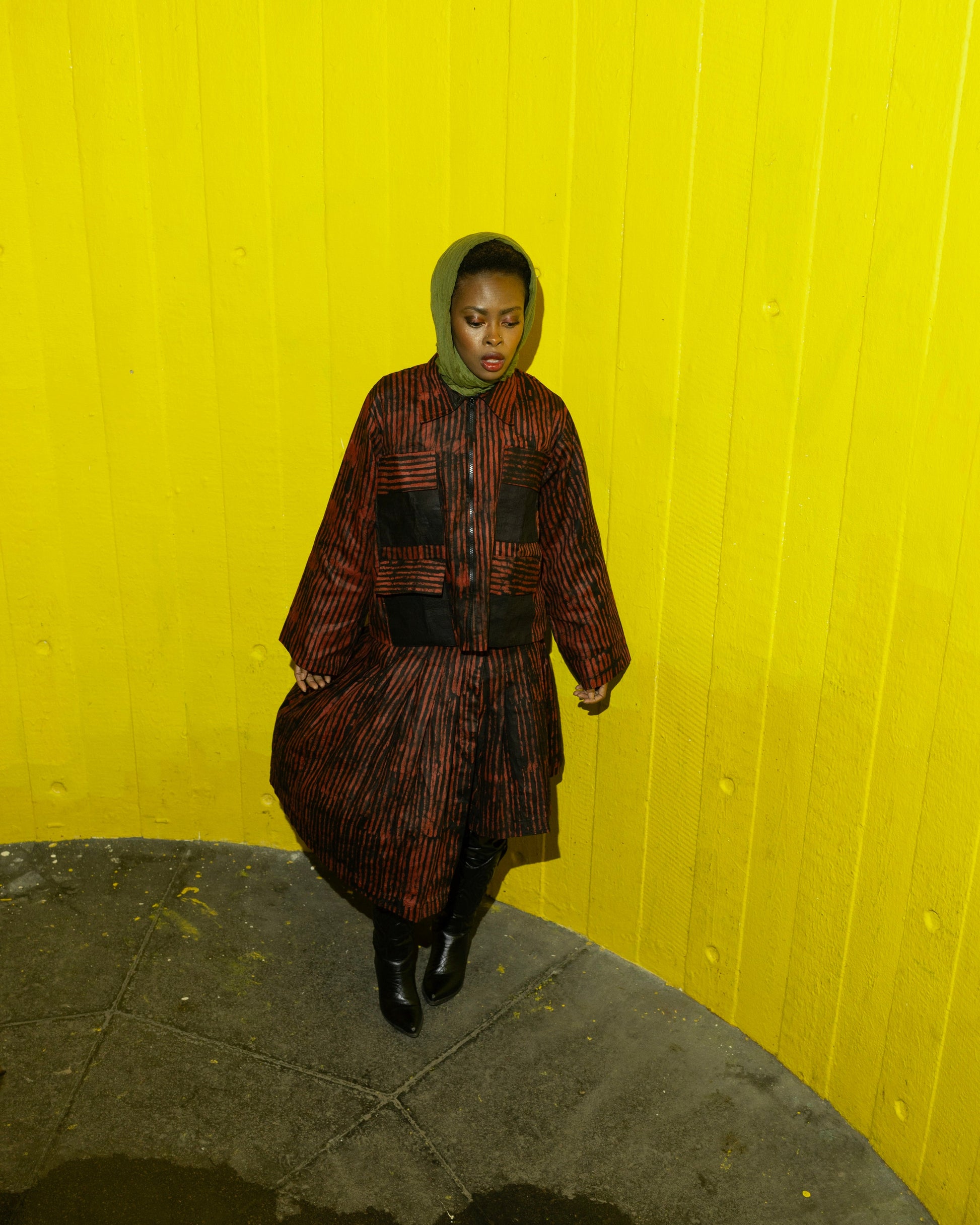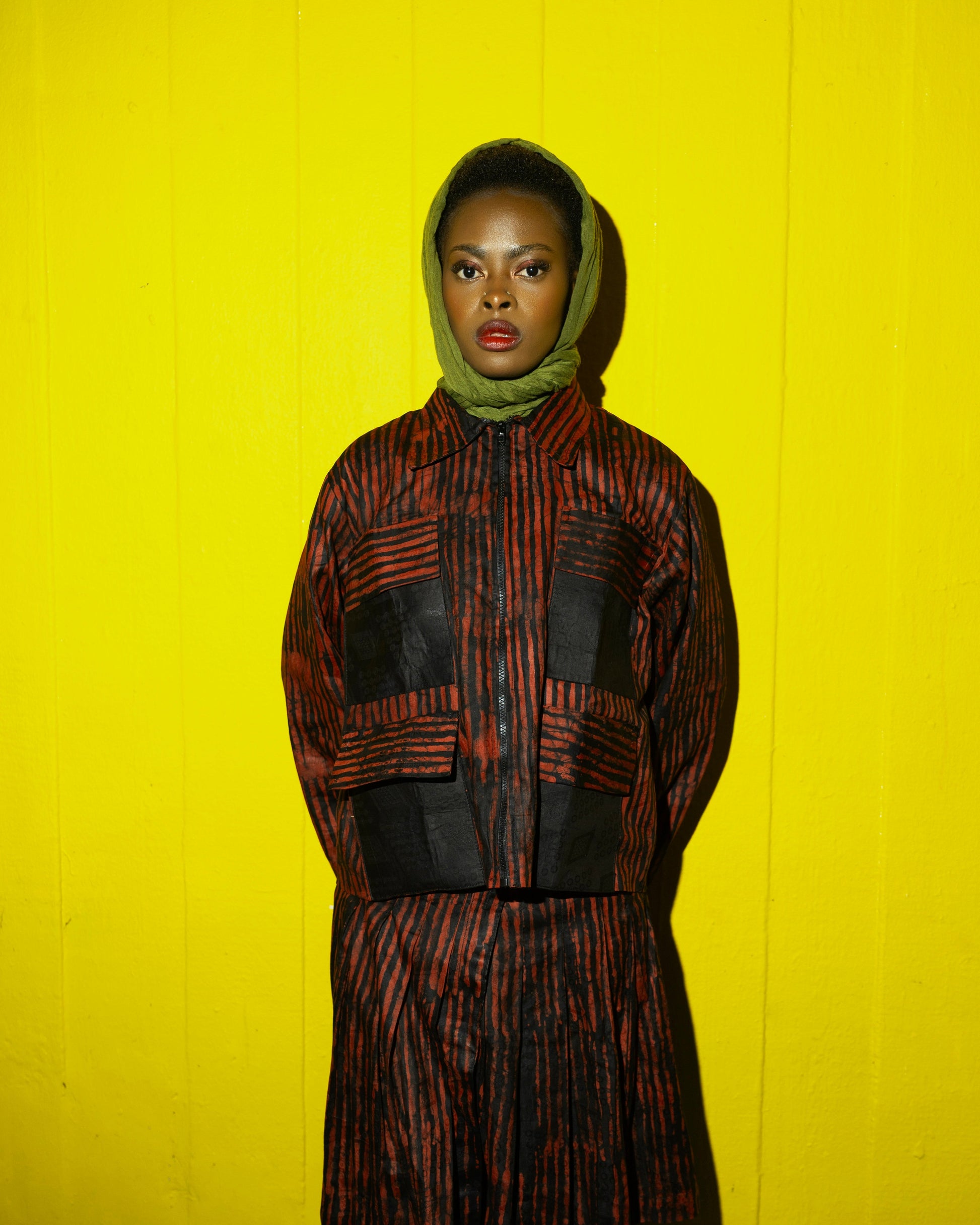 Asymmetrical skirt cut for movement, crafted in custom Cotton Adire (tie dye)fabric
